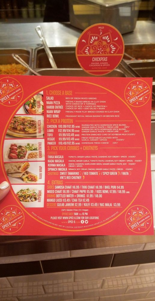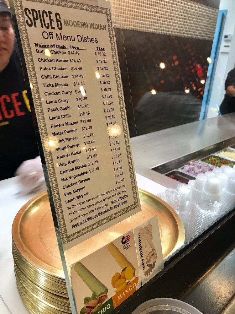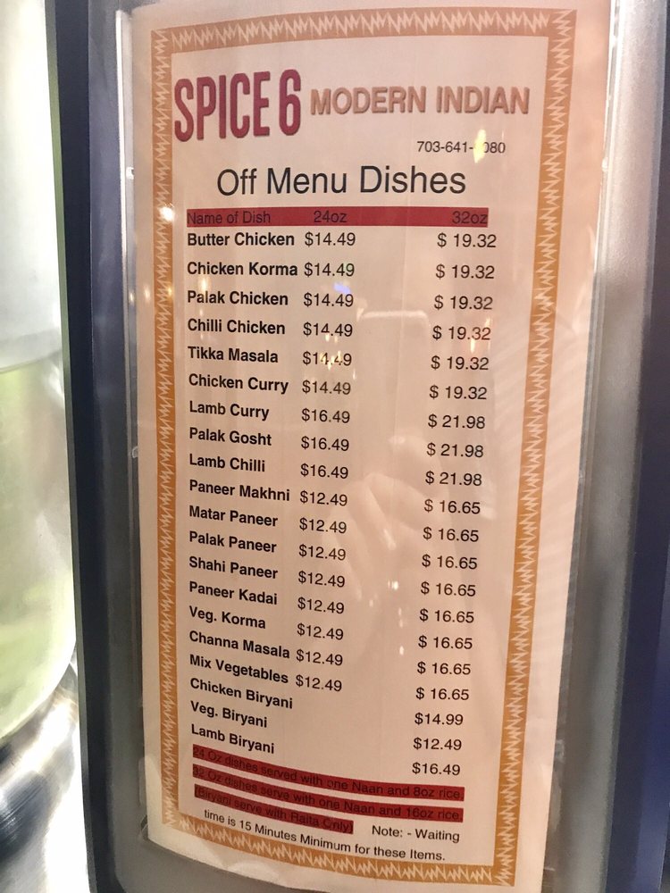 Introducing the menu at Spice 6 Modern Indian, a restaurant that offers a contemporary twist to traditional Indian cuisine. With a diverse menu filled with flavorful dishes like signature biryanis, curries, and tandoori items, this place stands out for its well-prepared and attractively presented options. The attentive and efficient service ensures a pleasant dining experience, with helpful staff offering recommendations. Some highlights include the Butter Chicken, Saag Paneer, and Naan stuffed with feta, spinach, and basil. The Chicken Tikka Masala and Chili Chicken dishes are also recommended for those who enjoy a bit of spice. Overall, the food at Spice 6 Modern Indian is delicious and worth the price for the quality you receive.